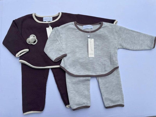 De Limonaïs twinsets in chocoladebruin en zachtgrijs zijn stijlvolle en comfortabele outfits, perfect voor zowel jongens als meisjes. Gemaakt van zachte, hoogwaardige stoffen, bieden deze sets ultiem comfort voor dagelijks gebruik. De warme chocoladekleur en het subtiele zachte grijs stralen een tijdloze elegantie uit, ideaal voor elk seizoen. Elk setje bestaat uit een comfortabele trui en een bijpassende broek, ontworpen met een perfecte pasvorm voor bewegingsvrijheid. Geschikt voor elke gelegenheid, van spelen tot ontspannen, en eenvoudig te combineren met andere accessoires. Een veelzijdige keuze voor ouders die zowel functionaliteit als stijl waarderen.