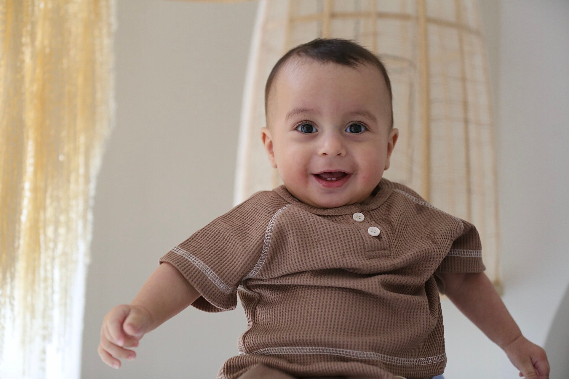 Dit zachte setje voor jongens heeft een rustieke charme en is verkrijgbaar in vier zachte kleuren: gebroken wit, licht grijs, donker grijs en zand bruin. Het luchtige, comfortabele materiaal zorgt voor een perfecte pasvrom, ideaal voor de warme zomerdagen. Subtiele details maken dit setje extra speciaal en het zachte ontwerp zorgt voor optimaal comfort voor je kleintje.