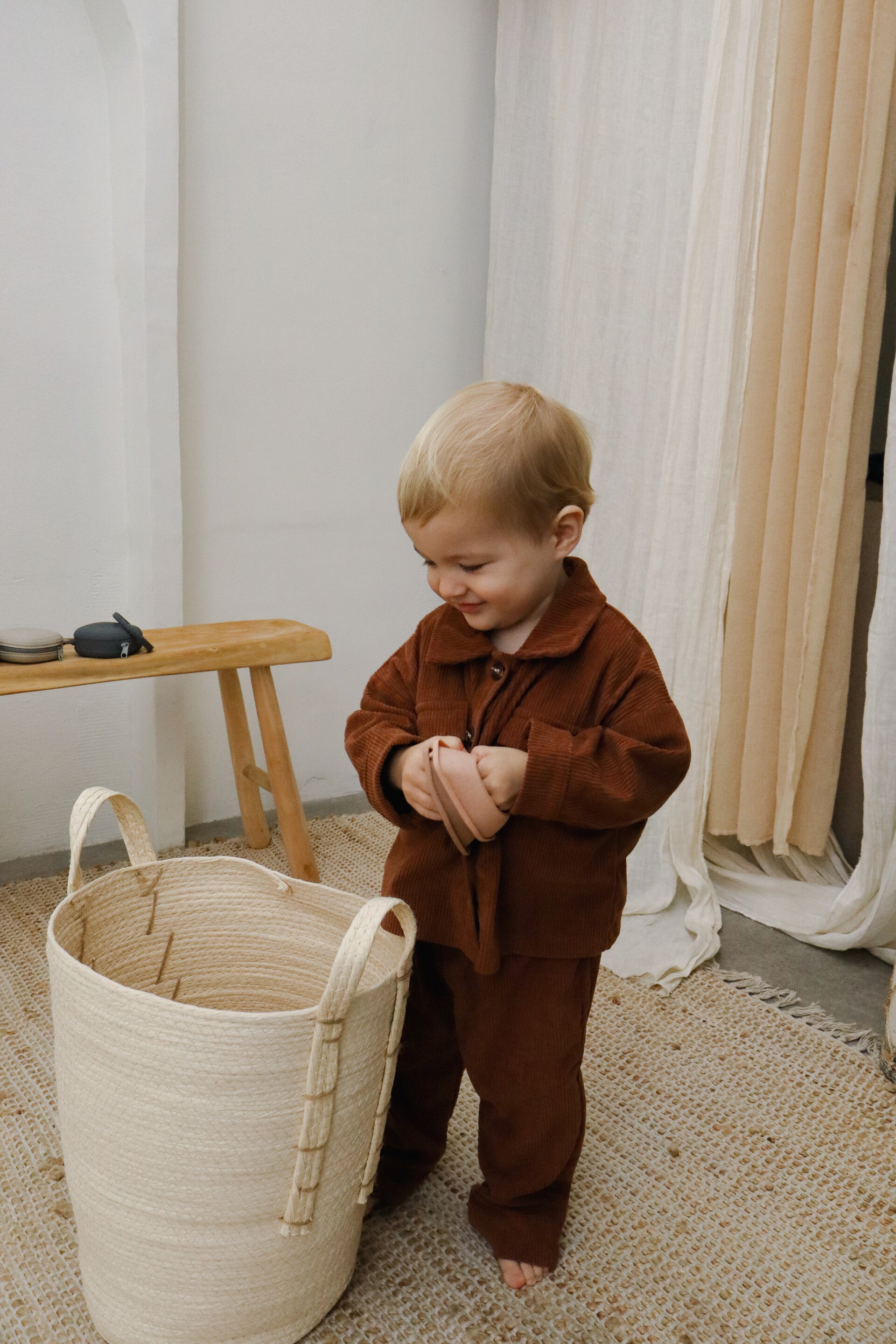 Een donkerbruine twinset met zachte velvetlook, comfortabel en stijlvol. Ideaal voor je kleintje om in te spelen, te onstpannen of er extra schattig uit te zien.