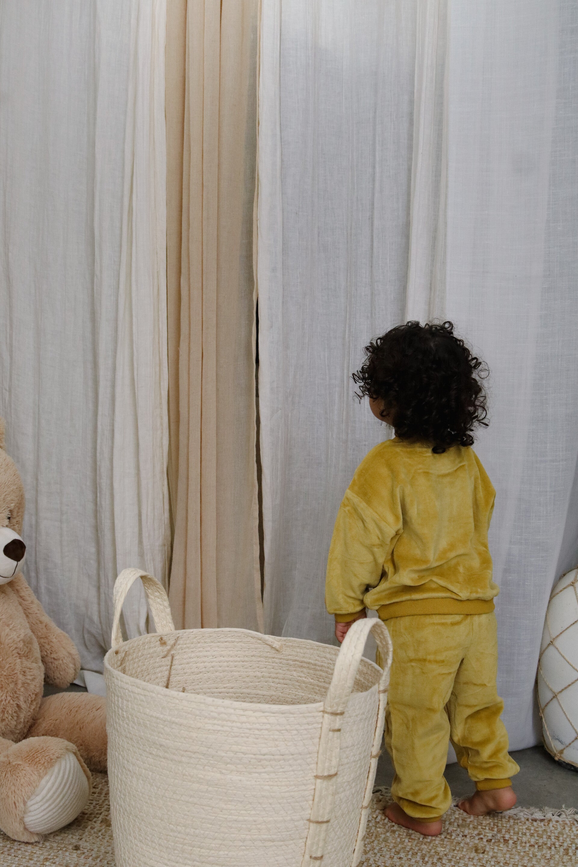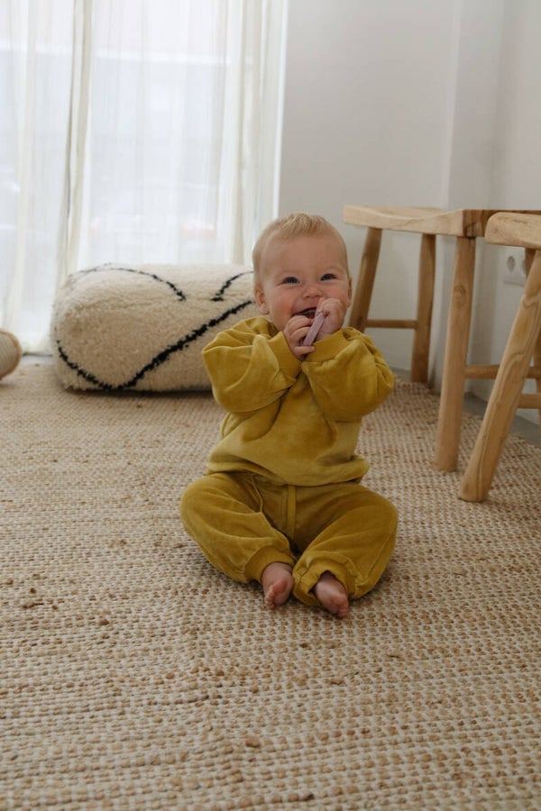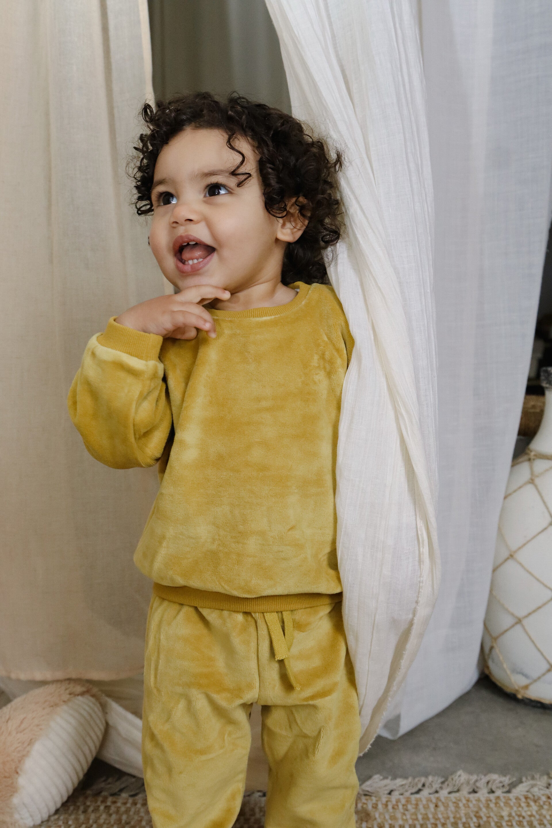Een zachte okergele set met een warme, luxueze uitstraling.
