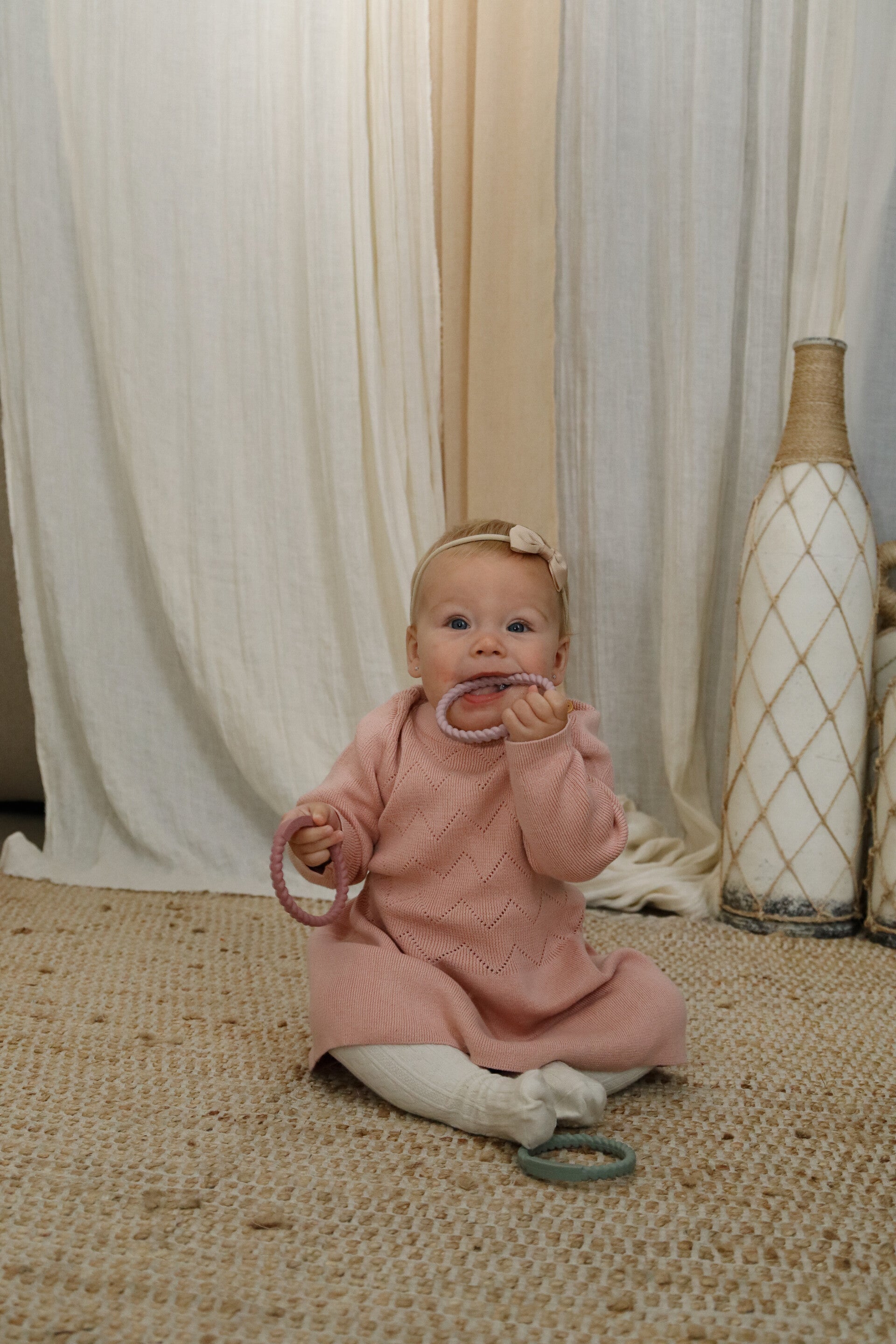 Een BPA-vrije bijtring, volledig veilig voor je baby en perfect om pijnlijke doorkomende tandjes te verzachten.